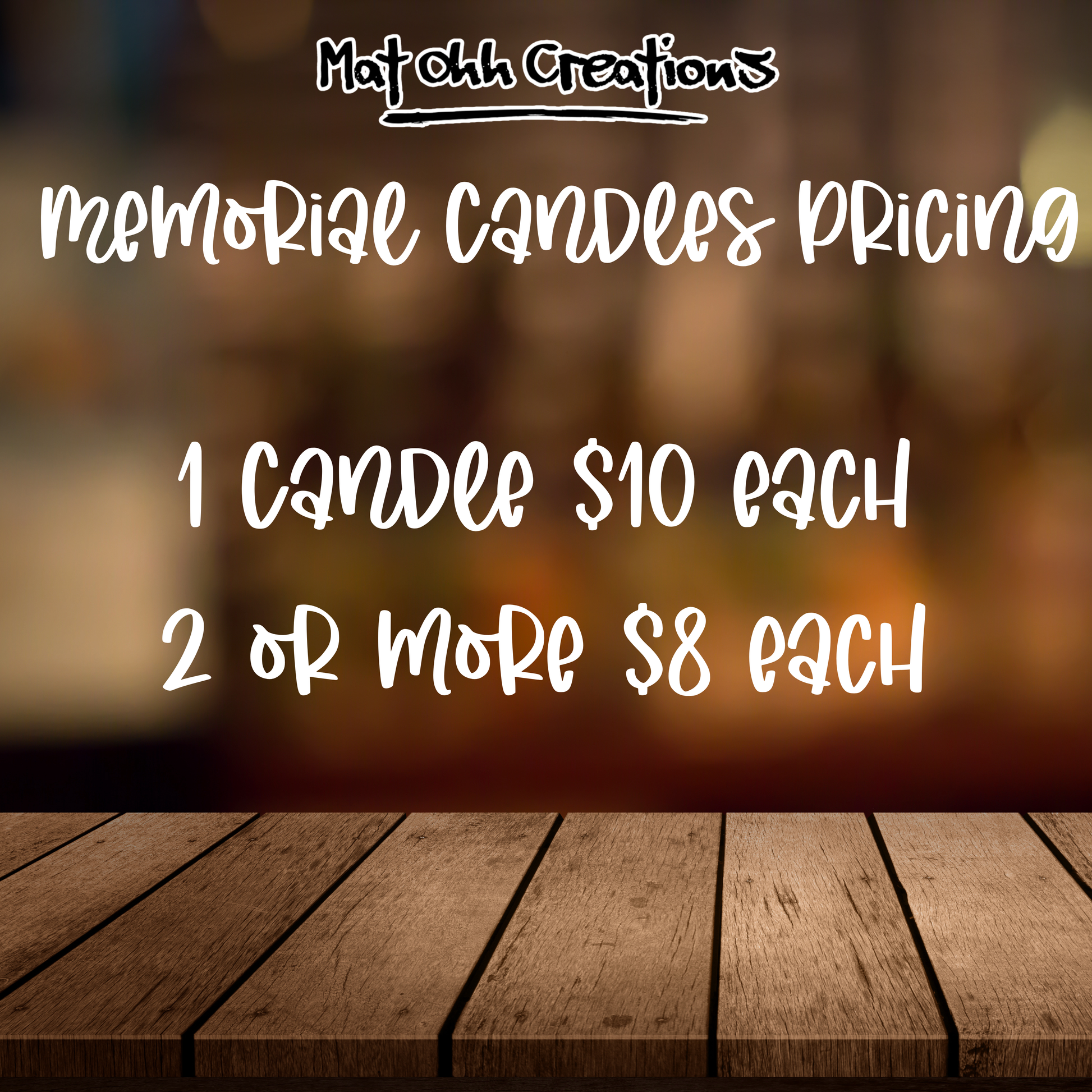 If ordering multiple candles, please email which designs you’d like for each one. In your email, include the photo, name, dates (optional), and any requests. Requests will be subject to approval. Emails can be sent to matohhcreations@gmail.com.