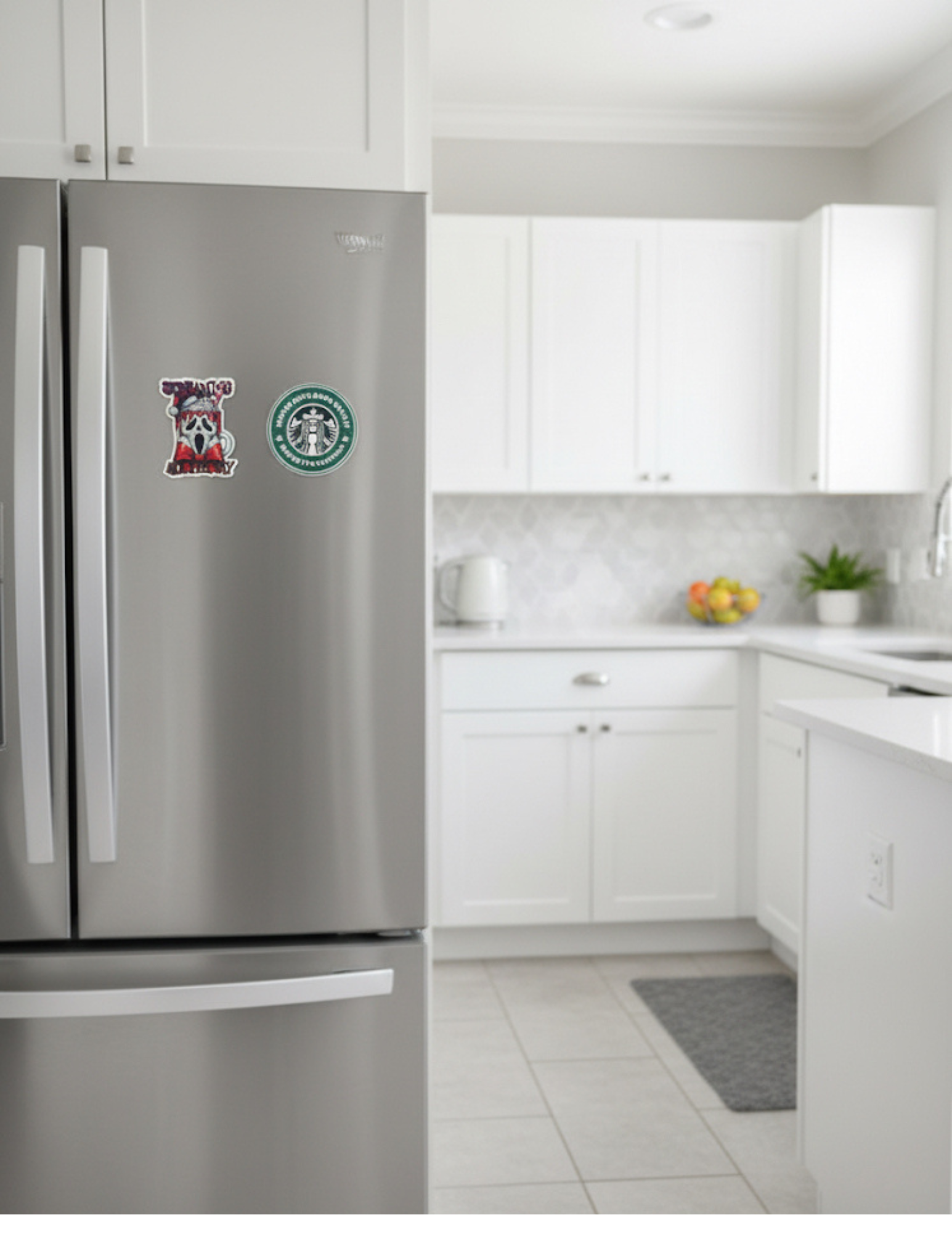 Sizes range from 5–8 inches depending on the design. Magnets stick to most fridges, but some models may be made with materials that mimic stainless steel and are not magnetic. We recommend testing your fridge with another magnet before ordering.