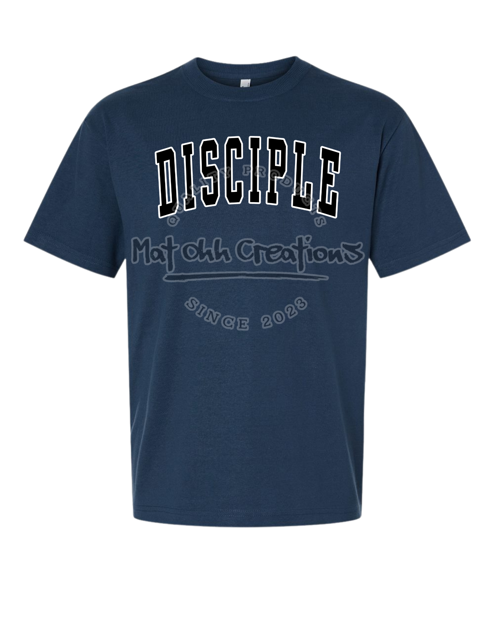 Honor the journey with our Disciple premium heavyweight t shirt. This design features a classic varsity style arch that brings a timeless collegiate feel to your daily look while celebrating the life of a disciple of Christ.
