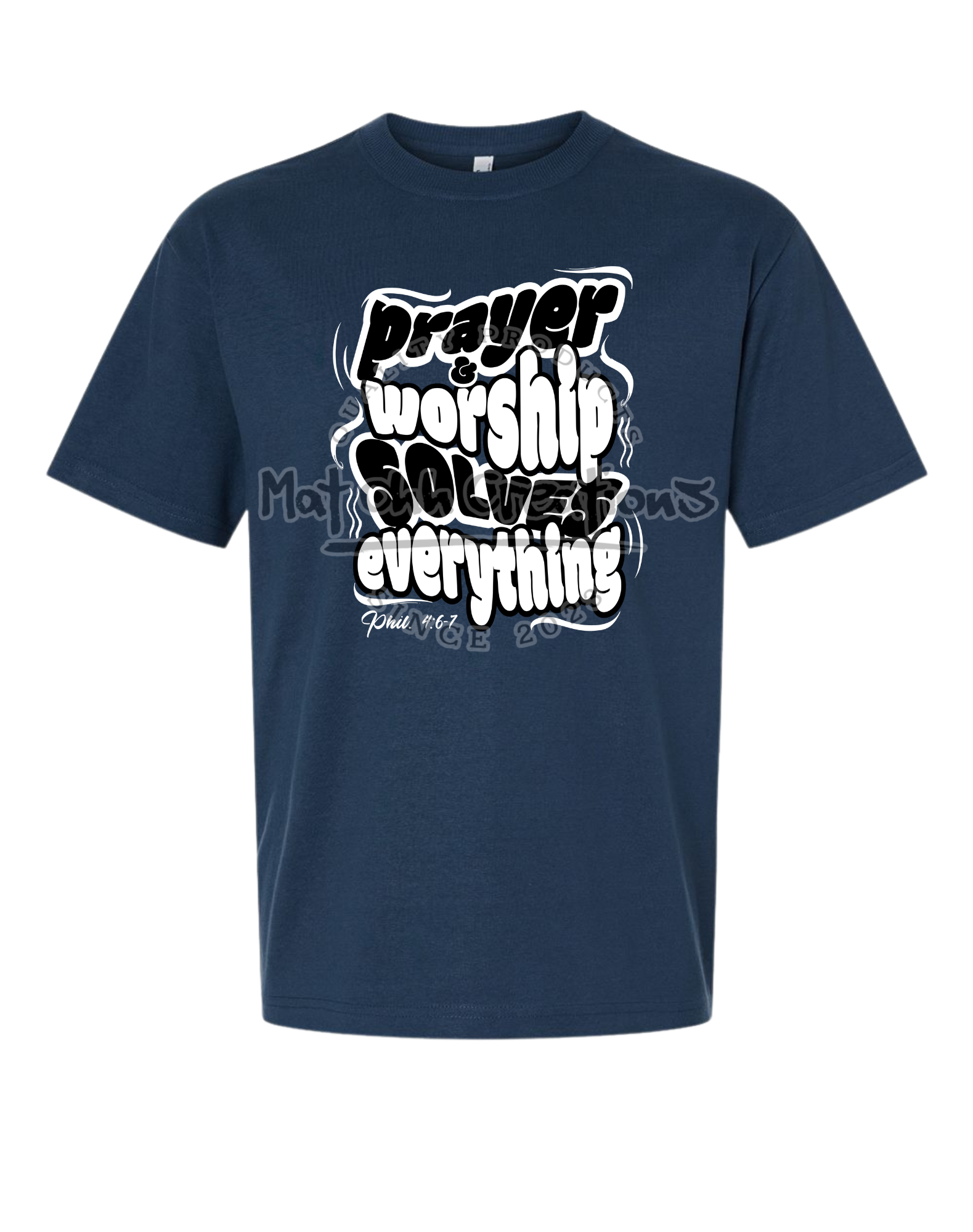 Keep a positive focus with our Prayer & Worship Solves Everything premium heavyweight t shirt. Featuring a bold, bubble style graphic and the truth of Philippians 4:6-7, this shirt is a vibrant reminder to take everything to God in worship.